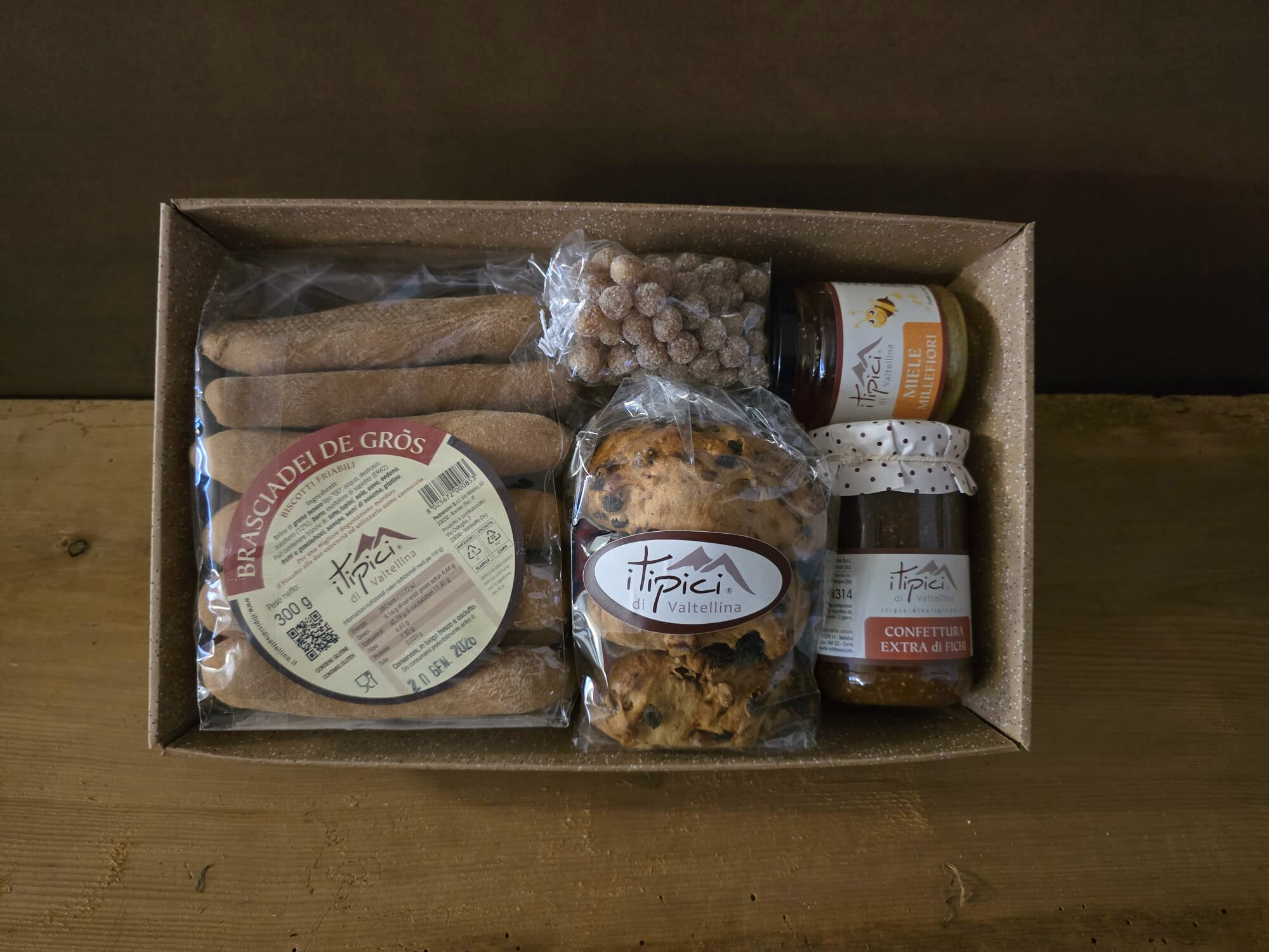 La felicità si trova soprattutto nelle piccole cose, anche nel cibo. I prodotti più genuini e più dolci della tradizione valtellinese sono stati selezionati appositamente per comporre una confezione regalo capace di riportare il buonumore: il merito è degli ingredienti di origine naturale, profondamente legati al territorio, e delle ricette artigianali con cui questi alimenti sono prodotti, ancora oggi come un secolo fa.