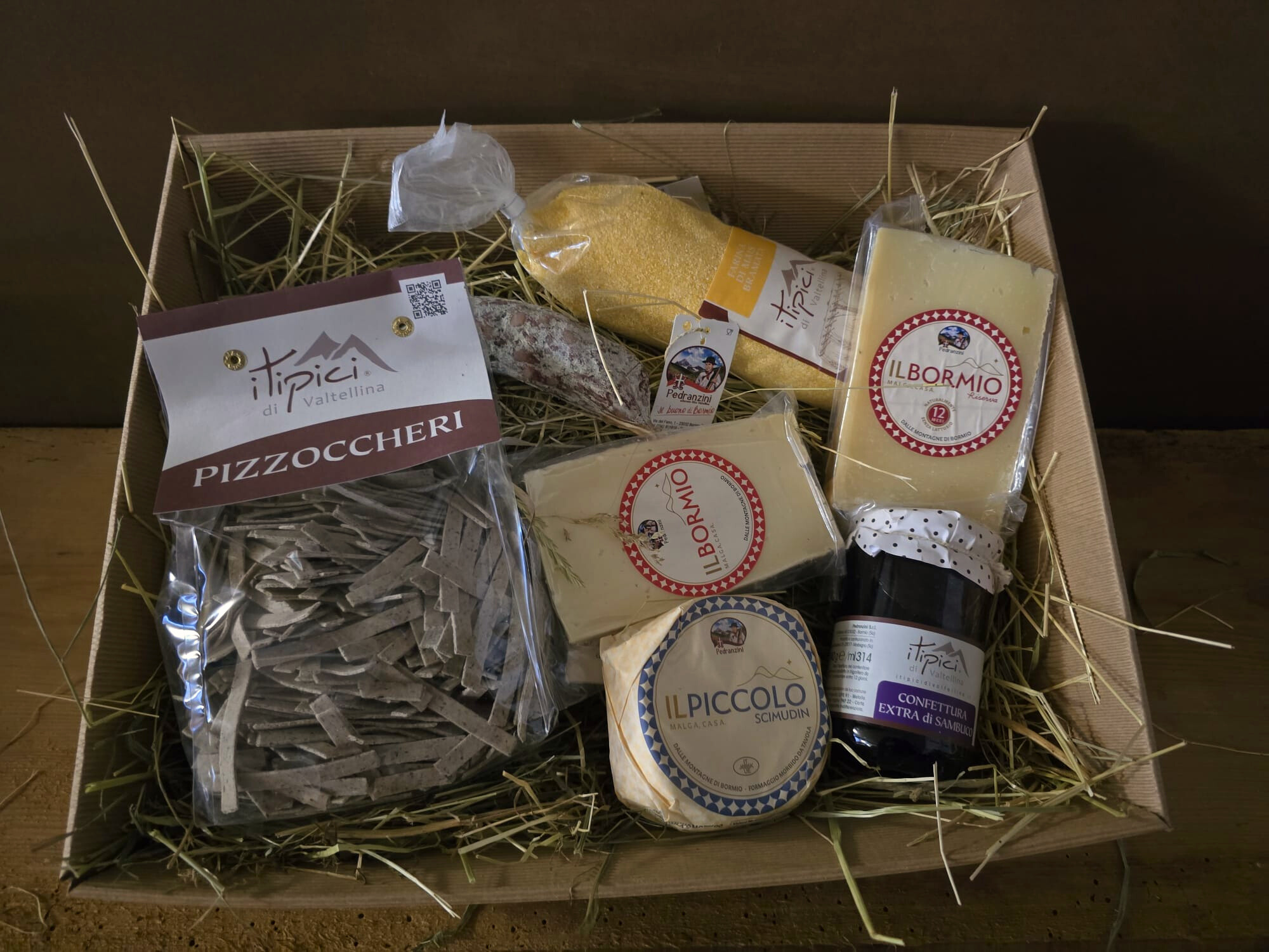 Pizzoccheri, polenta, formaggio, salumi… se si provano a menzionare i prodotti tipici più noti della provincia di Sondrio si finisce ad elencare il contenuto della box natalizia “Il tradizionale”: un nome una garanzia, dal momento che in questo cesto non possono proprio mancare le eccellenze locali più tipiche.