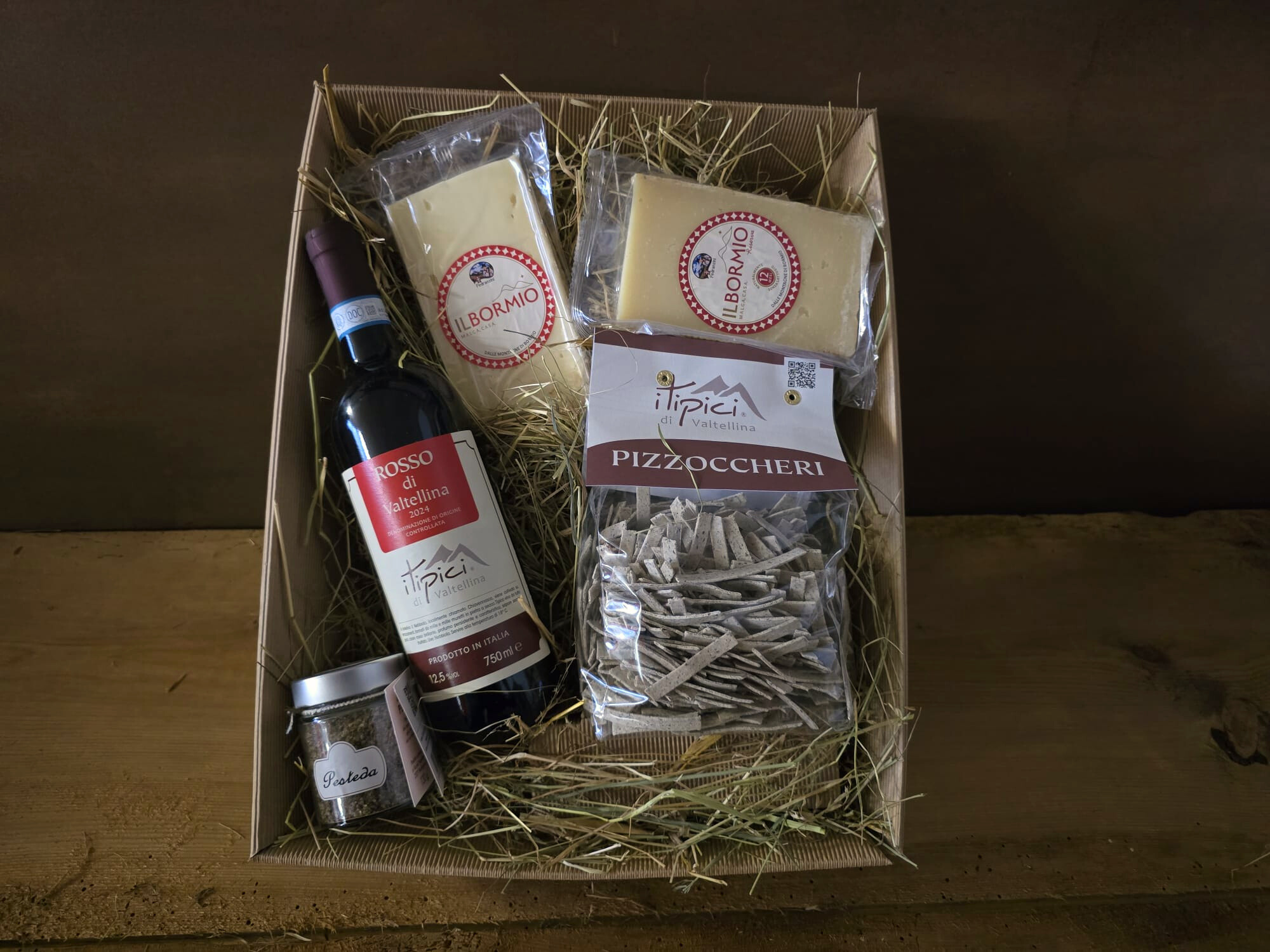 Ecco ciò che fa per te: con la Pizzoccheri Box avrai tutto il necessario direttamente a casa tua per stupire i tuoi ospiti e gustare il tipico piatto Valtellinese.