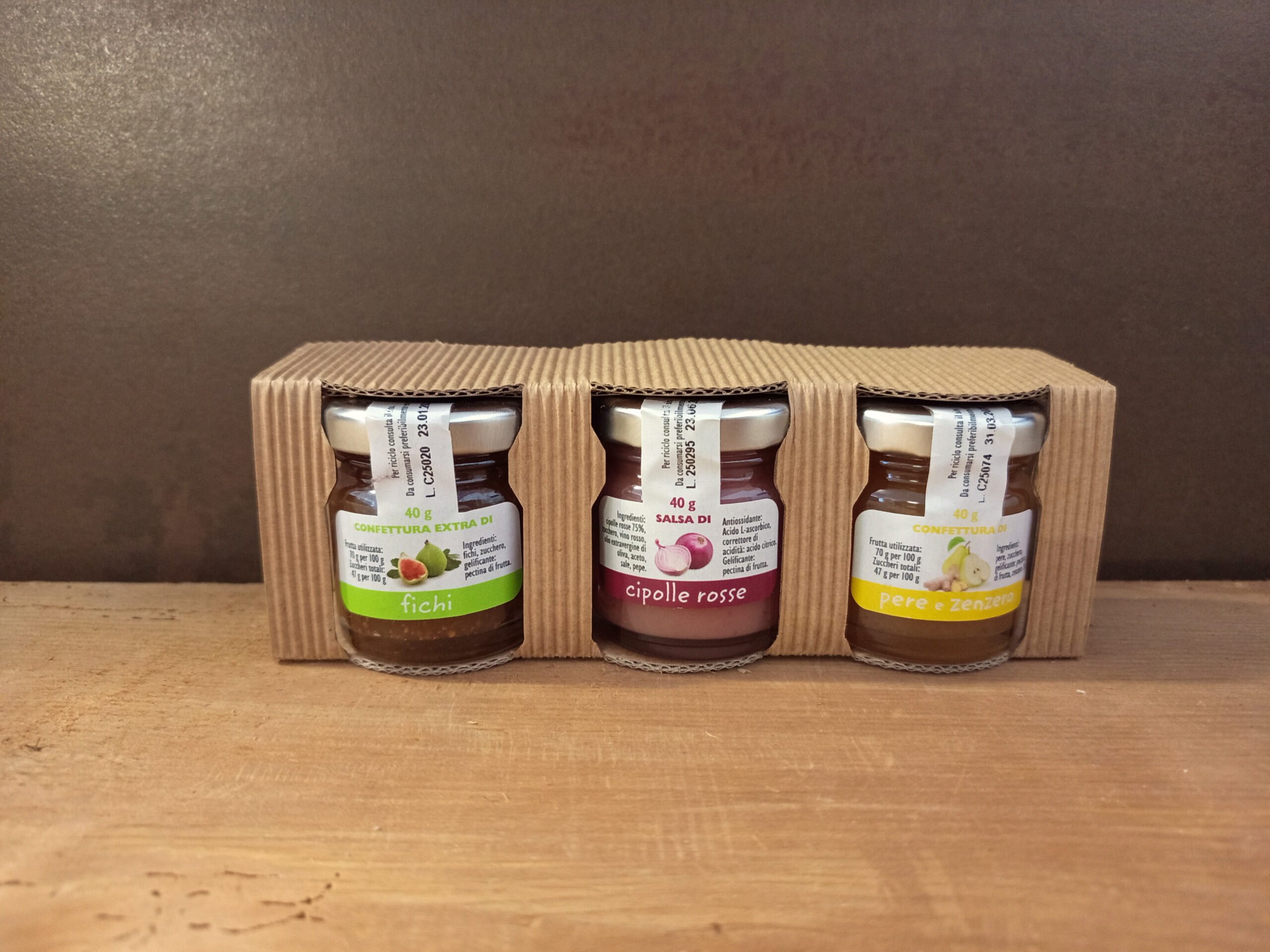 Una confezione di tre mini confetture dalla consistenza morbida: